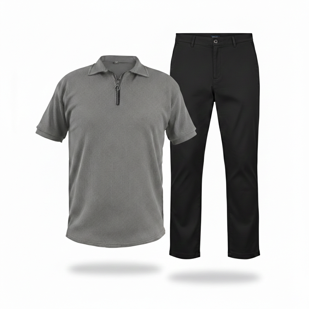 اگر به‌دنبال یک ست مردانه راحت، خوش‌فرم و کاربردی برای استفاده روزمره، محل کار یا دورهمی هستید، ست مدل Omid با ترکیب تیشرت نیم‌زیپ و شلوار بنگال کش، انتخابی ایده‌آل برای استایل اسپرت و نیمه‌رسمی است. این ست با طراحی مدرن، پارچه باکیفیت و فیت استاندارد، علاوه‌بر ظاهر شیک، راحتی کامل در طول روز را فراهم می‌کند و به‌راحتی با انواع کفش اسپرت و روزمره ست می‌شود.